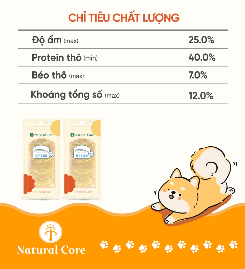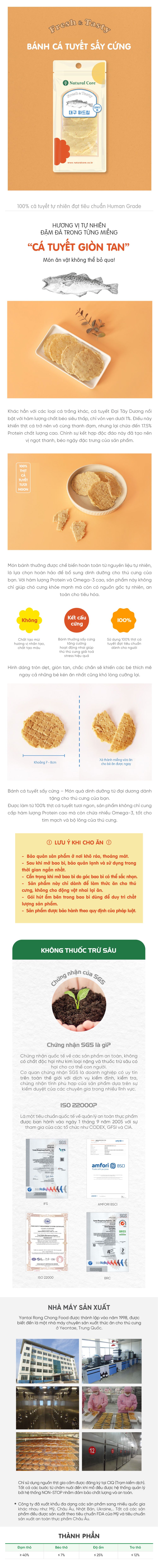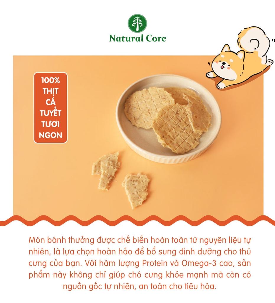 Bánh cá tuyết sấy cứng được chế biến từ cá tuyết tươi ngon, đảm bảo nguồn nguyên liệu tự nhiên, giàu protein và dưỡng chất thiết yếu cho thú cưng.