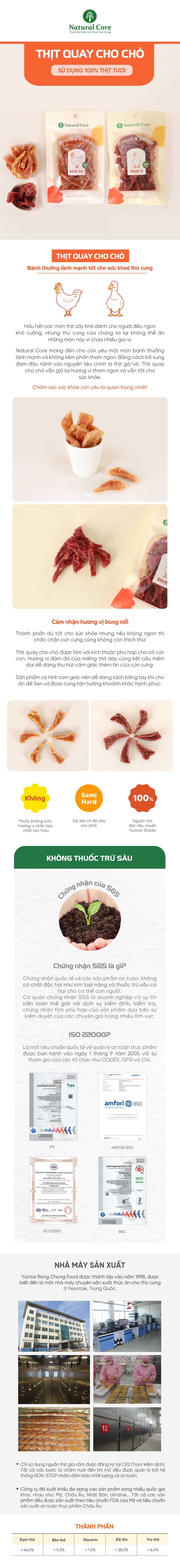 - Thịt gà quay: Gà, Glycerin thực vật (dầu dừa), Đạm đậu nành.