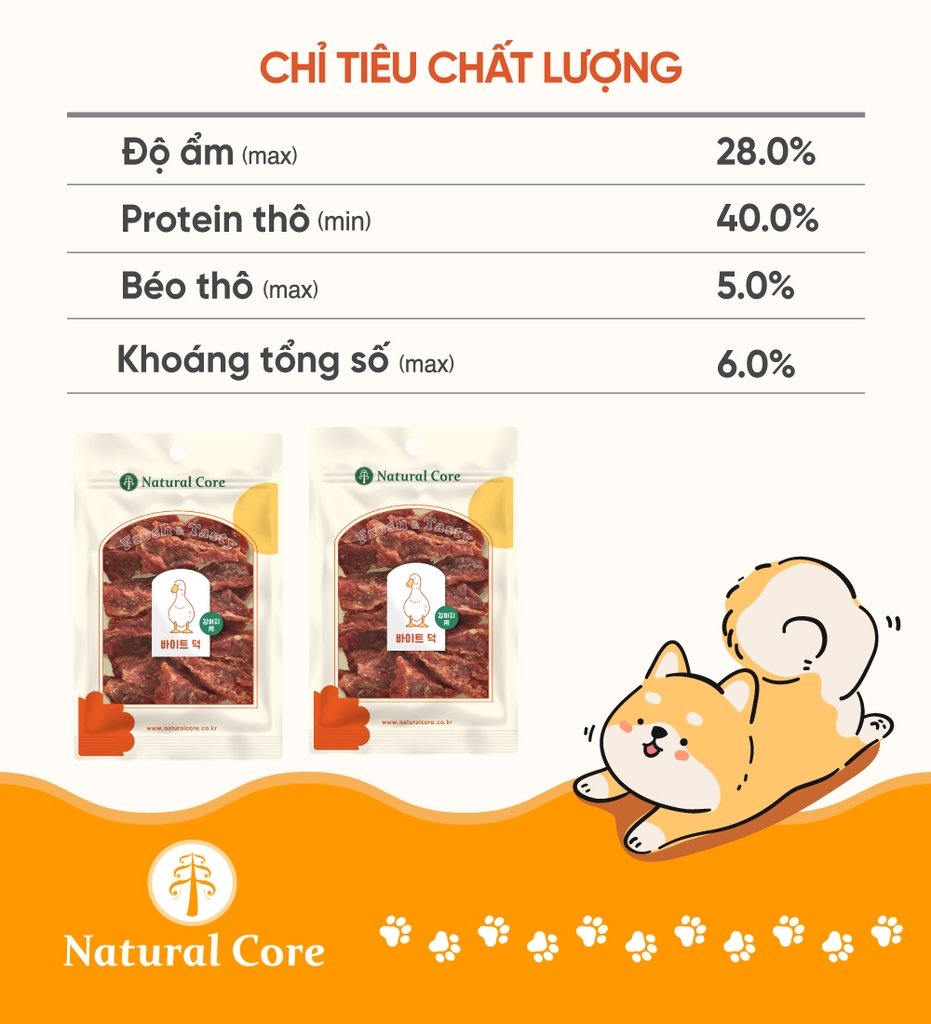 Được làm từ 100% thịt gà và thịt vịt tươi, sử dụng nguyên liệu sạch đạt tiêu chuẩn dành cho người, mang đến nguồn dinh dưỡng an toàn cho thú cưng.